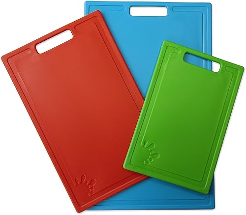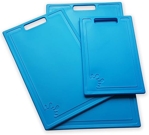 Lot de 3 planches à découper antidérapantes 3 pièces - Passe au lave-vaisselle - Pieds antidérapants (3 bleues)