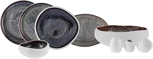 Karaca Streamline New Galactic 59 pièces Service de vaisselle pour 12 personnes, Moderne, Stylé, Exceptionnel, Vaisselle réactive, Unique, Saine, Naturelle, Auto-texturée, Forme organique