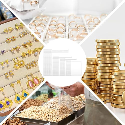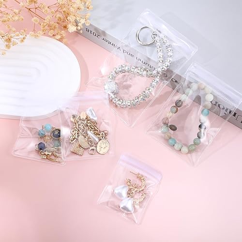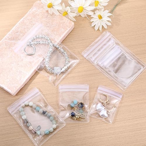 LongHoneySong Lot de 80 sachets à bijoux transparents en PVC - Fermeture éclair scellée de 4 tailles - Pour bagues, boucles d'oreilles, bracelets, bonbons