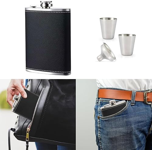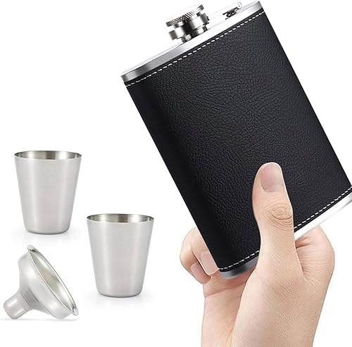8Oz Flasque a Alcool Kit, Flasque à Alcool Légère Avec 2 Tasses et 1 Entonnoir, Flasque De Poche En Acier Inoxydable, Flasques à Hanche pour Hommes, Fiole Alcool Pour Voyage Pêche Camping et Escalade