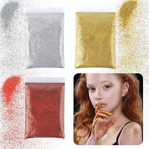 3 Paquets Paillettes Loisirs Creatifs, 50g/Paquet Paillettes Ongles avec Dorées, Argent, Rouge, Paillettes Maquillage Coloré Paillettes Dorées pour Les Ongles, Maquillage, Artisanat