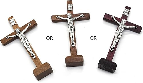 HYROOY Crucifix catholique en bois avec support, prière religieuse, décoration de table pour la maison, étagère, décoration de table, cadeau en bois