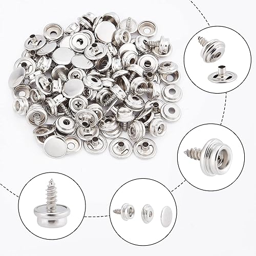 GORGECRAFT Lot de 30 Boutons-Pression en Acier Inoxydable de Qualité Marine avec 5/8' Boutons-Pression en Toile pour Bateau, Tapis, Meubles