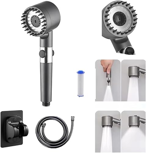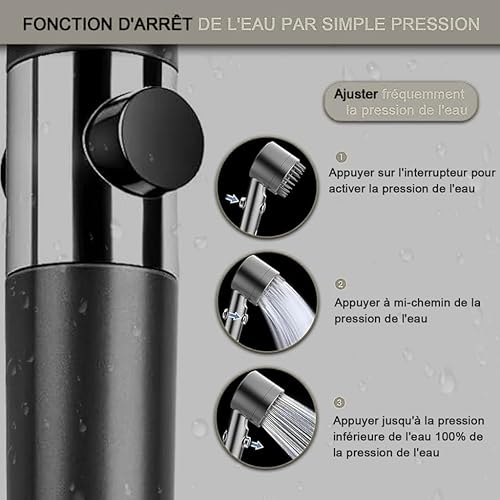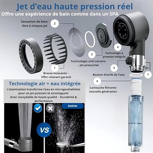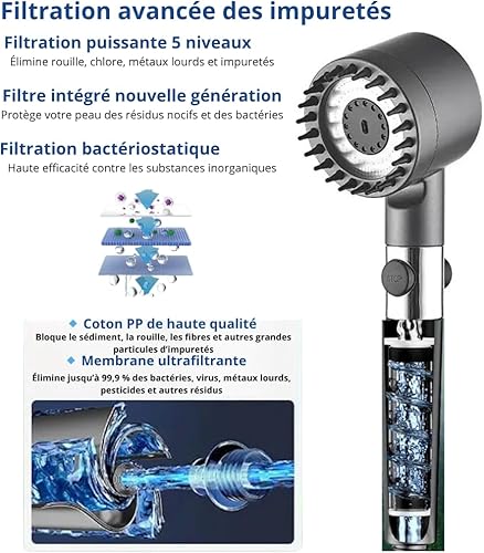 Pommeau de Douche Haute Pression 5 Modes – Économie d’Eau, Anti-Calcaire, Filtration Avancée – Bouton Stop, Support Réglable – Mode Massage – Salle de Bain Universelle