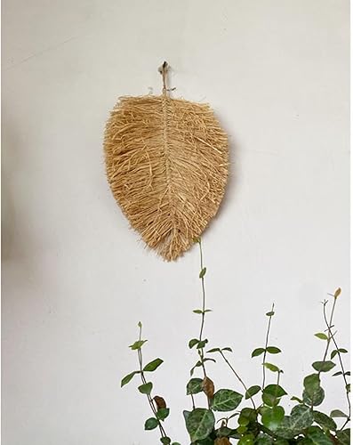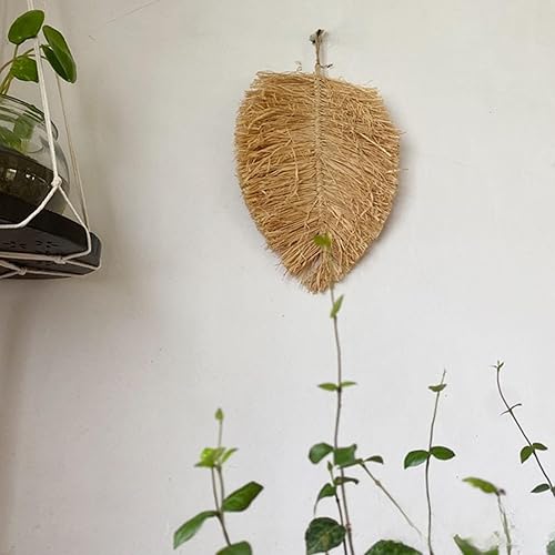 MANGRY 2 pièces spécimen de Feuilles de Raphia, tentures murales décoratives de Style campagnard décoration Murale de Fond de canapé Ornements avec Corde de Suspension pour Salon Chambre à Coucher(A)