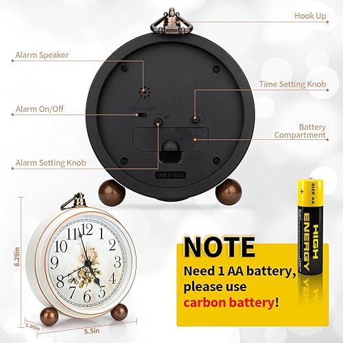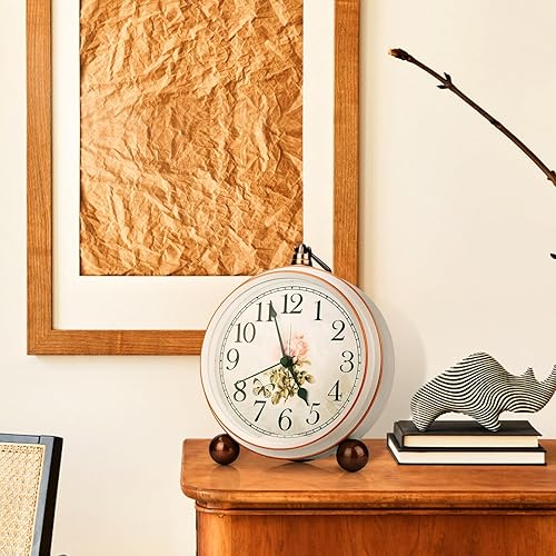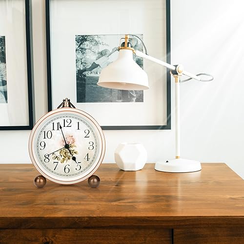 Maxspace Réveil de Bureau rétro Classique pour Salon, Table, Chambre à Coucher, 12,7 cm, Silencieux, sans tic-tac, Fonctionne avec Piles pour Les dormeurs Lourds, lentille en Verre HD, Facile à Lire