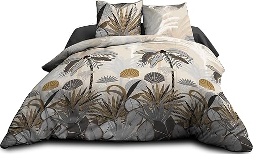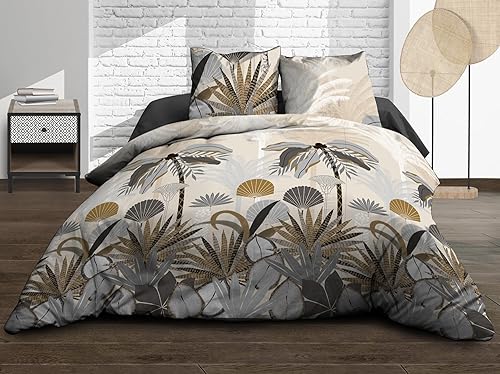 Housse de Couette 220x240 + 2 taies - Pur Coton 57 Fils - Palma, Gris, Doré, Beige