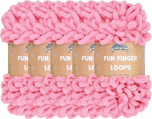 JubileeYarn Lot de 5 écheveaux de fil à boucles de doigts en polyester Jumbo 100 g/écheveau Rose chatouillé