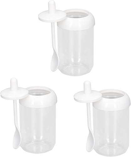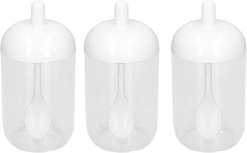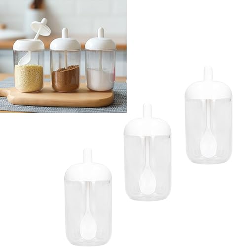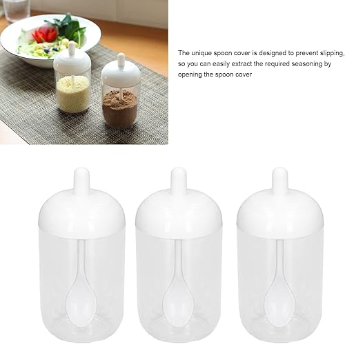 Cyrank 3 pièces sucrier en plastique avec ensemble de couvercles de cuillère, pot de sel avec cuillère et couvercle pots à épices clairs de cuisine pour comptoir à la maison