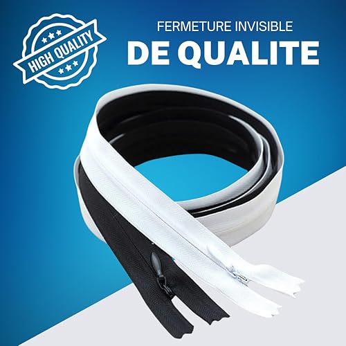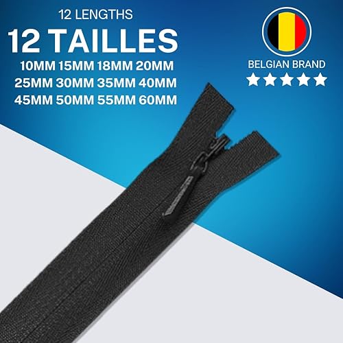 LEDUC 10 Fermetures éclair Invisible Noir 25 cm Nylon Largeur 2,4cm Haute qualité Couture Coussin Jupe Pantalon Poche Short Robe Meuble