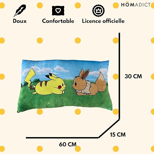 HÔMADICT - Coussin Pokémon - Evoli Et Pikachu Bisous - Accessoire Décoratif - Doux et Moelleux - 60 X 30 cm - Licence Officiel