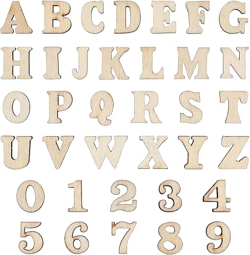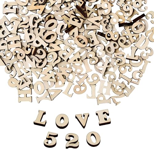 Dokeno 400 Pièces Lettres en Bois et Numéros en Bois, Alphabet et chiffres en Bois pour Non Peints Bricolage Décorations, Lettre Majuscule Couleur Naturelle pour Enfant Scrabble Début Éducatifs Jouet