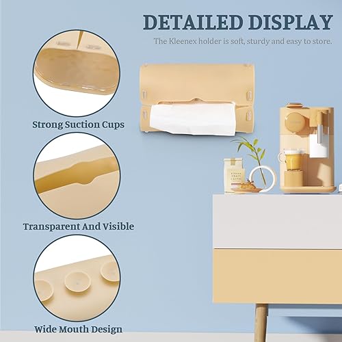 LELE LIFE Boîte à mouchoirs rectangulaire en silicone à ventouse pour salle de bain, voiture, bureau (beige)