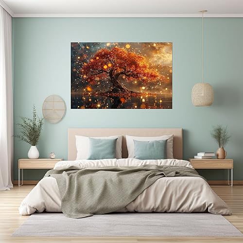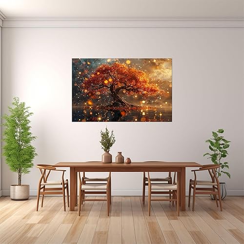 JOSUE Peinture Sur Toile Tableau Arbre De Vie Paysage abstrait Tableau Grand Format Sur Toile,Orange, or Peintures DéCor Murale Pour Salon Chambre Maison Bain- 30x40cm Sans cadre