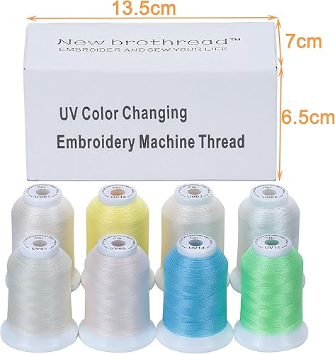 New brothread 8 Bobines Changement de couleur UV Fil à broder à la machine 30WT 500M (550Y) Chaque Bobine pour la Broderie, le Matelasser, la Couture
