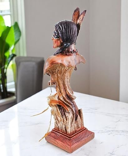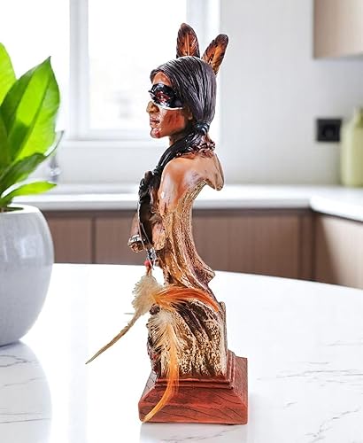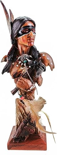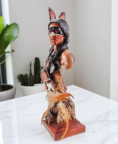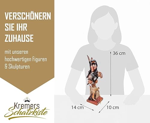 Kremers Schatzkiste Tomahawk Buste indien avec plumes - 36 x 14 x 10 cm - Statue décorative en polyrésine peinte à la main - Pour collectionneurs et amateurs de la culture américaine