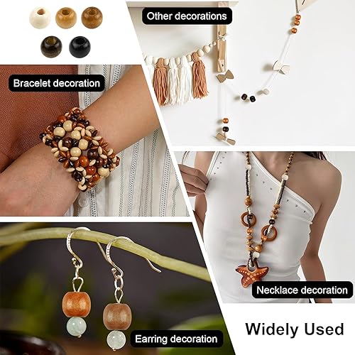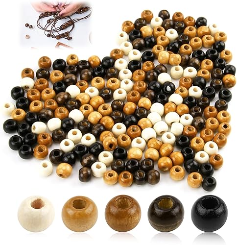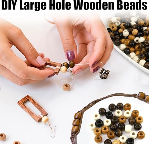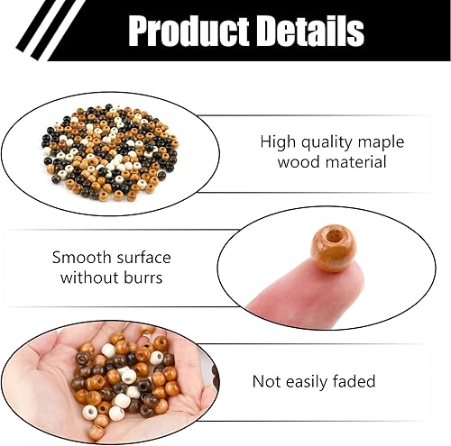 200pcs Perles en Bois à Grand Trou pour Cheveux Tresse Africaine, Bois 9x10mm pour Décoration, Grosse Perle avec Grand Trou, Idéales pour Bijoux et Décoration