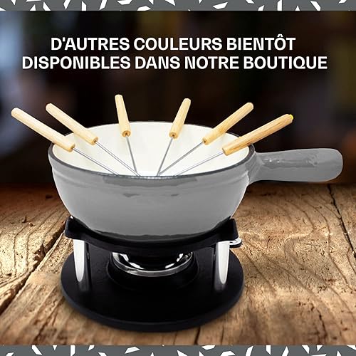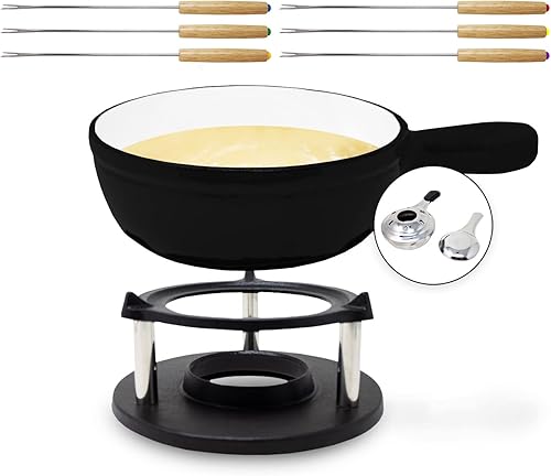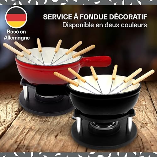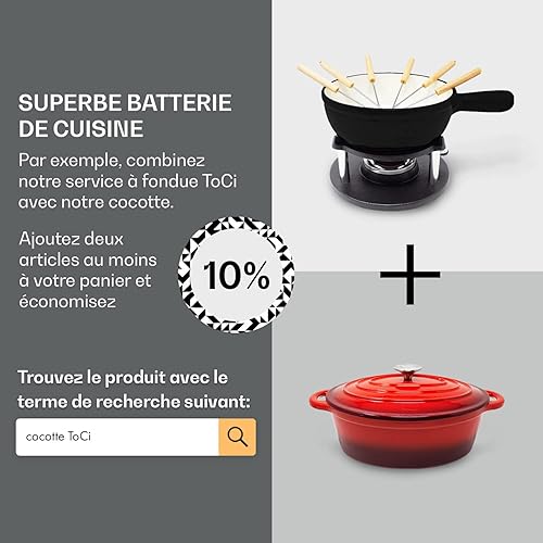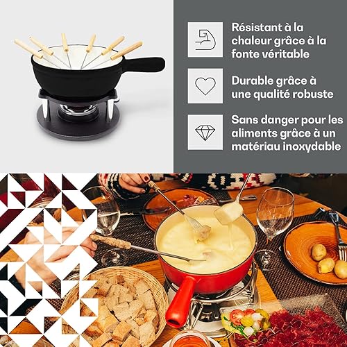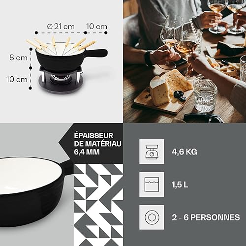 ToCis Big BBQ Set à fondue « Holsten » avec 6 fourchettes | Fondue au fromage avec réchaud 1,5L en fonte, Fondue émaillée convient aussi pour le bouillon et le chocolat, parfait pour les fêtes, Noir