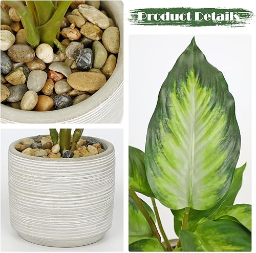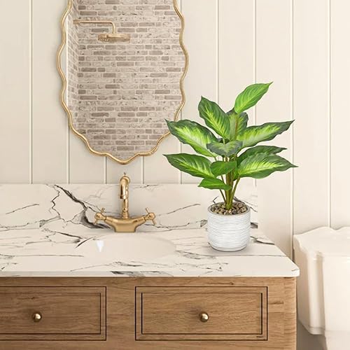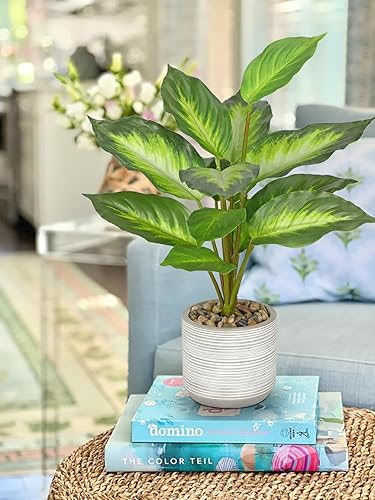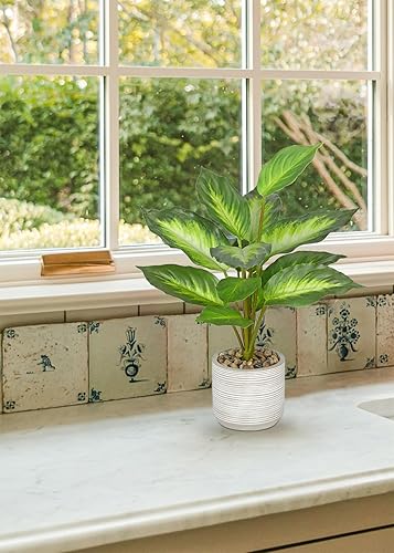 Arborus Plantes artificielles d'intérieur dans un pot en céramique de 36,8 cm de haut, fausses plantes dieffenbachia dans un pot rustique, fausses plantes vertes artificielles pour salon, bureau,