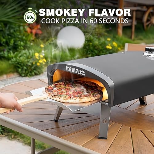 Mimiuo Four à pizza d'extérieur au gaz avec régulateur de gaz britannique, four G four classique portable avec revêtement noir, comprend une pierre à pizza et une pelle à pizza de 30,5 x 35,6 cm avec