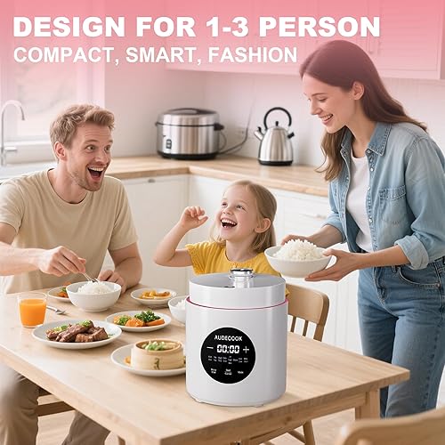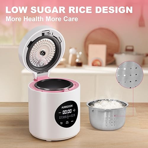 Audecook Cuiseur de Riz 1,5 L Avec Fonction Low Carb et Cuiseur Vapeur, Mini Cuiseur à Riz 7 Fonctions, Multicuiseur numérique, minuterie, maintien au chaud écran LED (Blanc)
