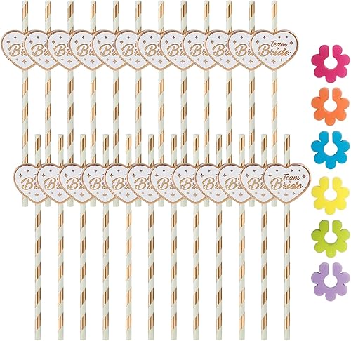 DHSBGWSX Lot de 24 pailles de fête, avec logo pour verre à vin, accessoires pour mariage, fournitures de décoration de table, pailles pour enterrement de vie de jeune fille