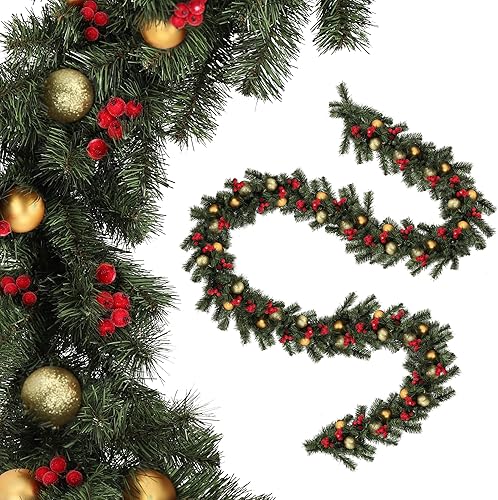 KADAX Guirlande de Noël, guirlande décorative pour escaliers et cheminées, 260 cm de long, guirlande de pin artificiel en film PVC, décoration de Noël (éclairs)