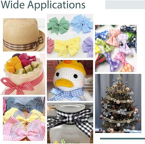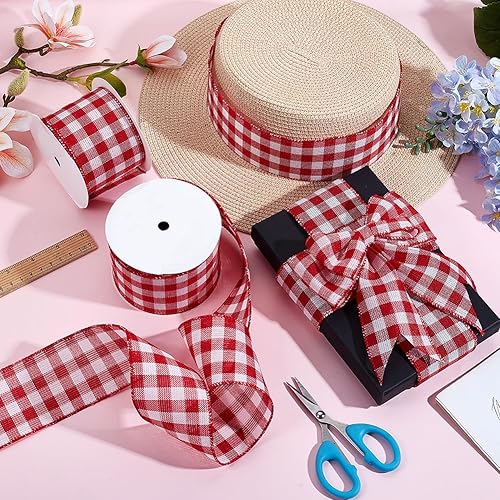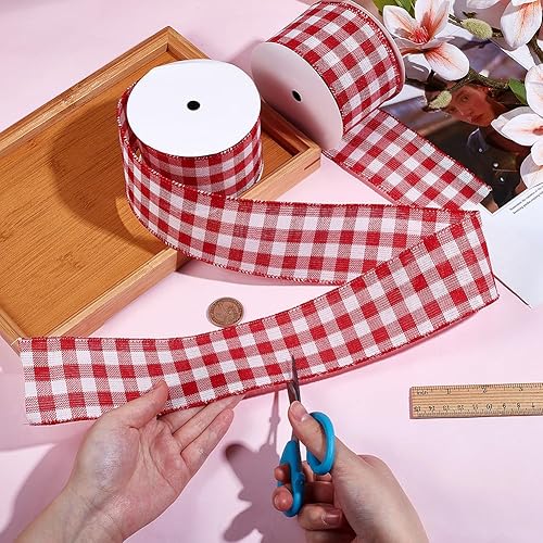 AHANDMAKER Lot de 2 rouleaux de ruban à carreaux rouges et blancs, 6,3 cm de large, ruban à bords métalliques quadrillés pour emballage cadeau, grand nœud, couronne, décoration d'intérieur, décoration