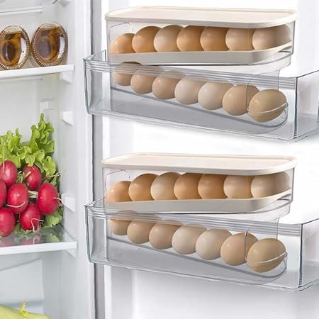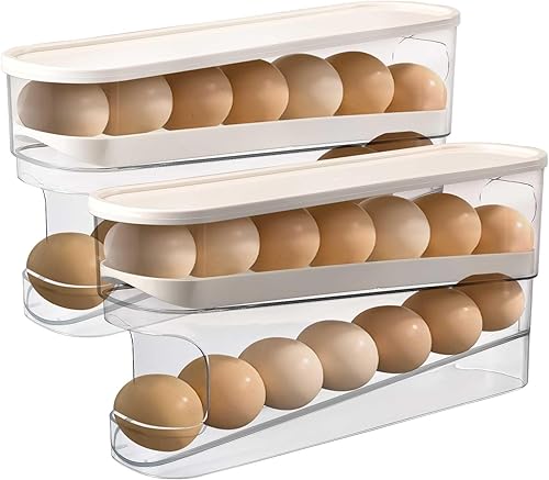 Gachiwar Distributeur Oeufs pour Réfrigérateur Rouler Automatiquement Boîte a Oeufs, Peu Encombrant Rangement Oeuf Frigo, Organisateur de Cuisine pour Garde-manger, Réfrigérateur de Comptoir