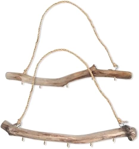 JANZU 2 Pièces Branches Décoratives en Bois Flotté Naturel Ferme Maison Décoration Murale Organisateurs de Suspendus avec 5 Crochets Installation Facile