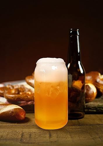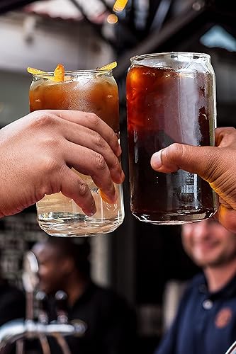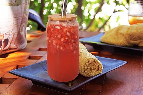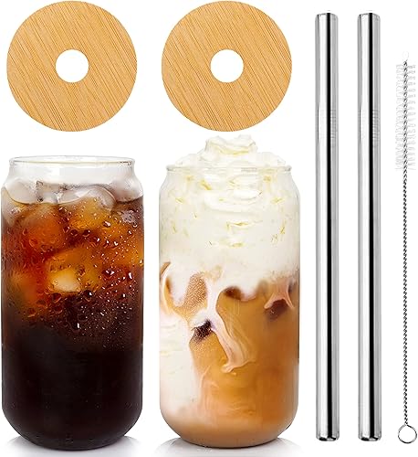 Lot de 2 verres à bière avec couvercles et paille, 590 ml avec couvercle en bambou, tasse à café glacé, tasse réutilisable en forme de canette de boisson Boba bouteille de voyage, cadeau de camping