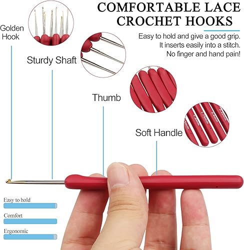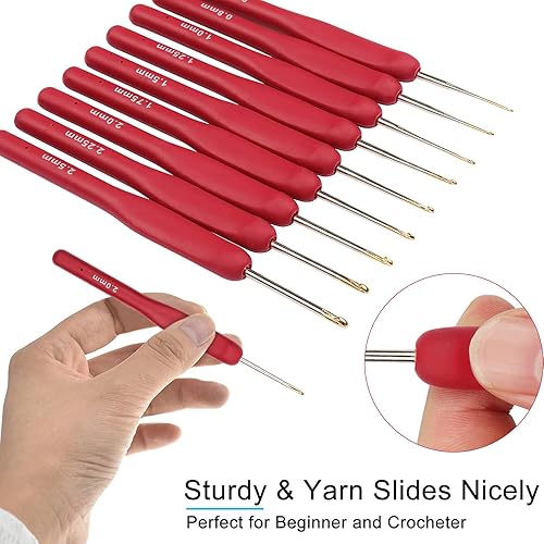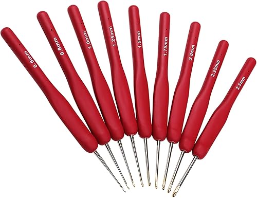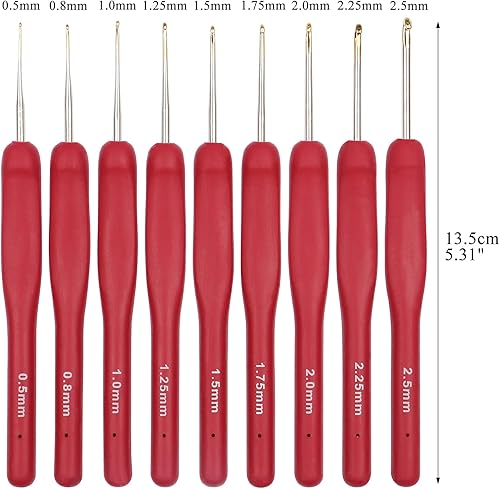 Ensemble de Crochets Coopay - 9 Pièces Rouges Classiques Avec Poche en Lin, 0,5 - 2,5 mm, Petite Taille Pour Fil de Dentelle, Ultra-Fins
