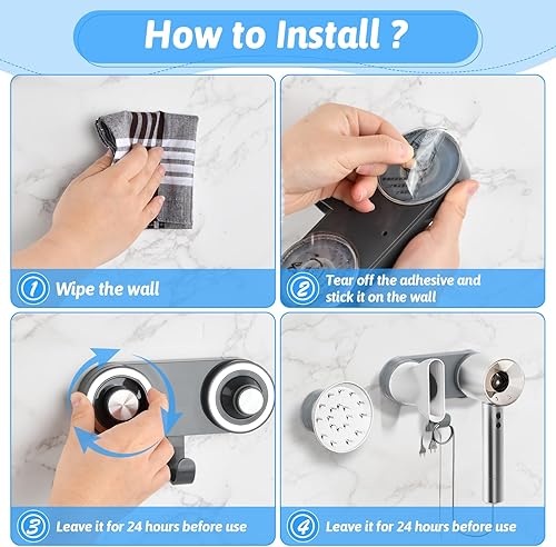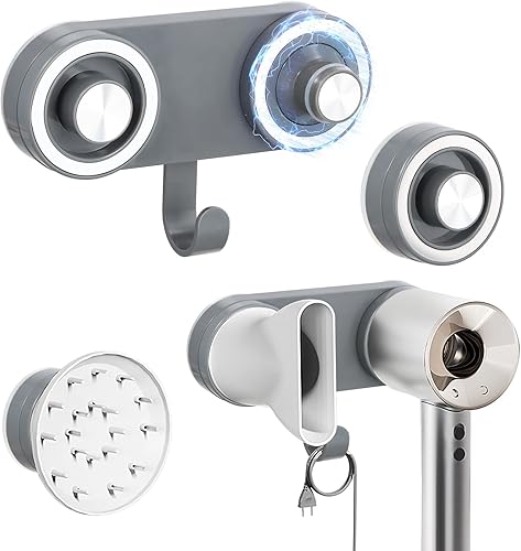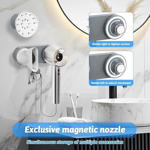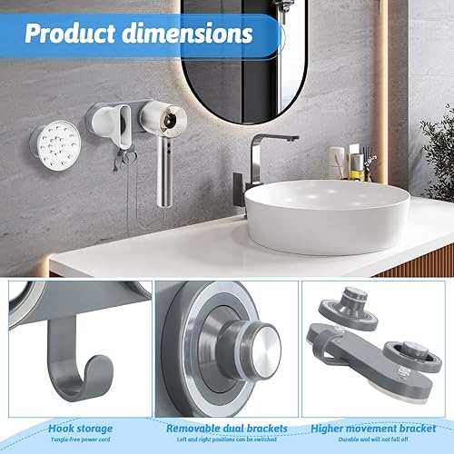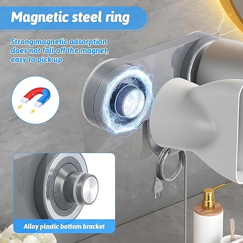 Mapille Porte Sèche Cheveux Mural Support Sèche Cheveux pour Tous Les Magnétiques Haute Vitesse Sèche-Cheveux Porte Sèche Cheveux à Ventouse sans Perçage avec Rangement des Câbles et Poutenir les Buse