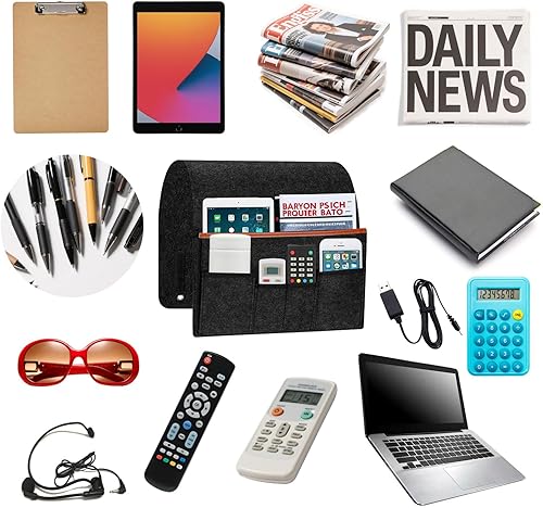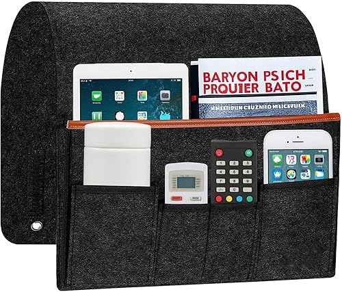 Yphzmtz Plateau de canapé, accoudoir, organiseur avec 5 séparateurs, sac de rangement pour livre, télécommande, téléphone portable