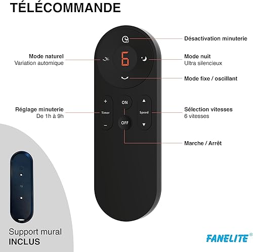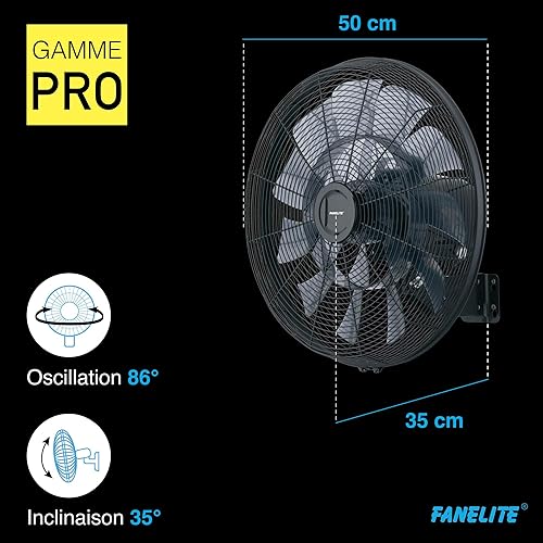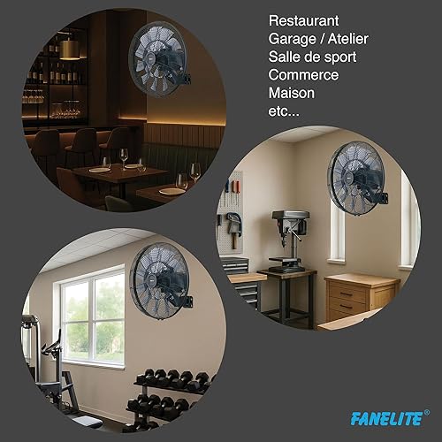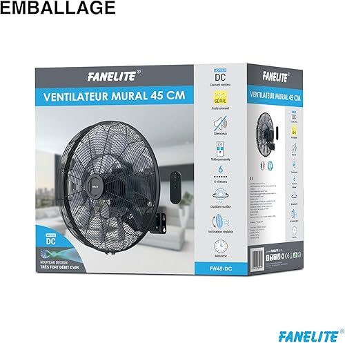 Fanelite Ventilateur mural professionnel FW45-DC – 45 cm – Moteur DC silencieux – Débit d’air 170 m³/min – 6 vitesses – Télécommande – Puissant – Usage pro/commercial