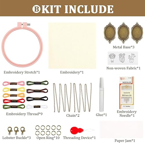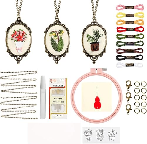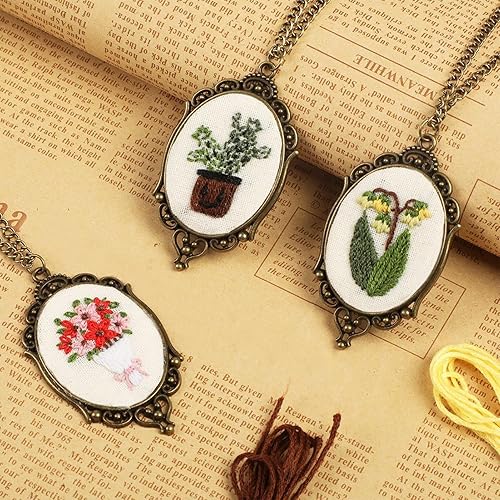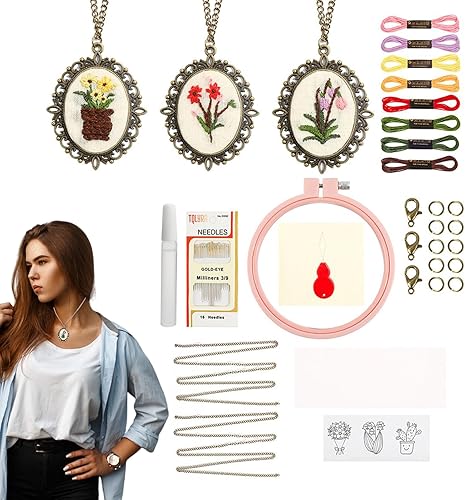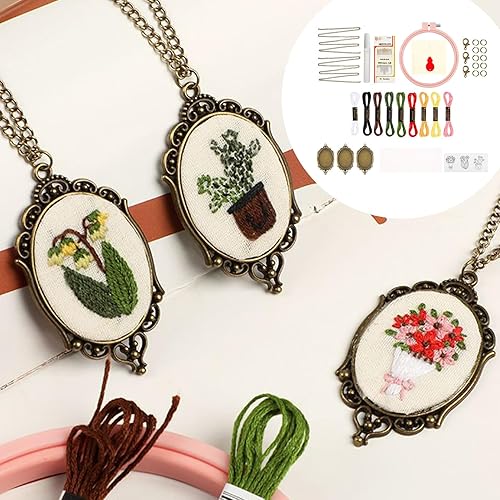 Kit de broderie, kit de broderie débutant pour les adultes,Ensemble de pendentif à coudre | Kit de collier de broderie classique coloré pour la pratique des adultes