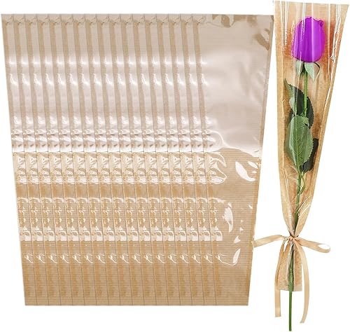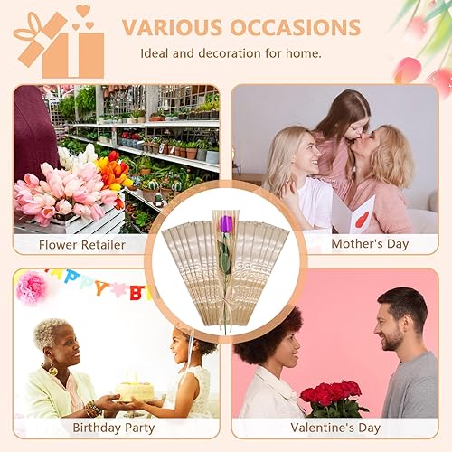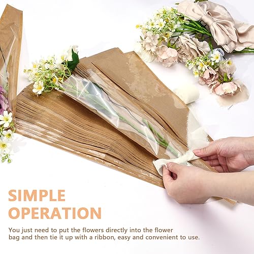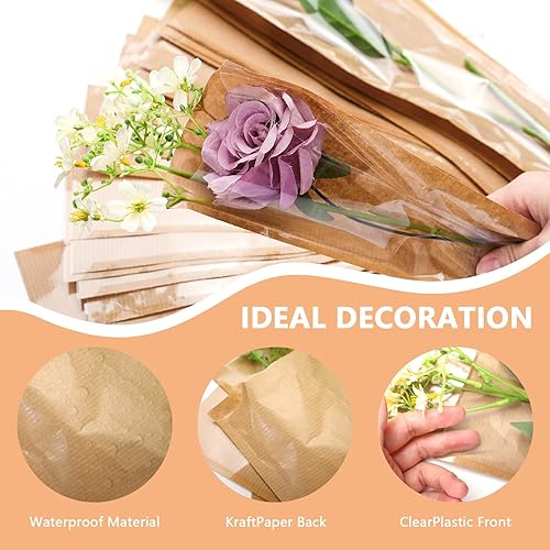 Lot de 100 pochettes en papier cadeau pour boutiques, petites fleurs, pochettes transparentes pour mariage, anniversaire, bar floral (40 x 12 x 3,8 cm)