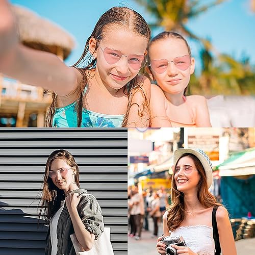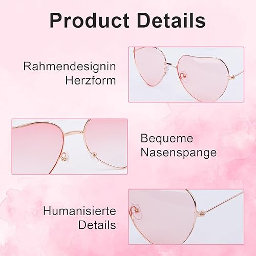 Minnhua 4 Pièces Lunettes Coeur, Bordure Métallique Lunette de Soleil, Lunette Disco, Heart Sunglasses pour Enfants et Adultes Filles, Accessoires de Fête Magiques Halloween Anniversaire (Rose)