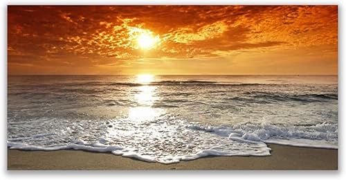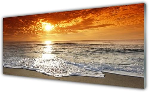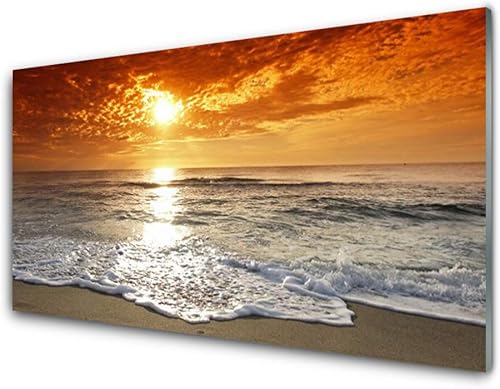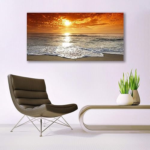Tulup Impression sur Verre Trempé 100x50cm - Plastique Imprimés Tableau Décoration Déco Mural Moderne Design - Sun Sea Paysage