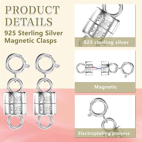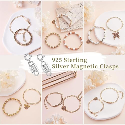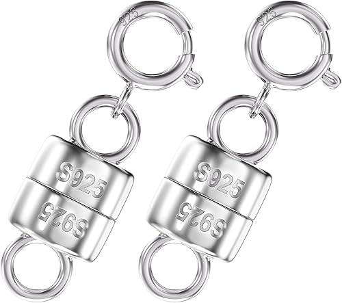 Goiern Lot de 2 fermoirs magnétiques en argent sterling 925 - Chaîne d'extension magnétique pour bricolage, fabrication de bijoux, bracelet, collier, argenté, L