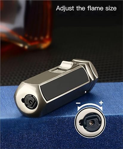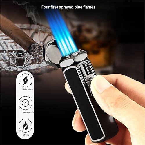 Briquet butane à jet direct à quatre feux, briquet en métal, allume-cigare, taille de flamme réglable, gaz butane recyclable, adapté aux bougies, feux de camp, cigares, moxibustion, camping, cadeaux f