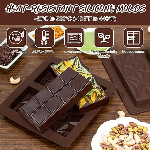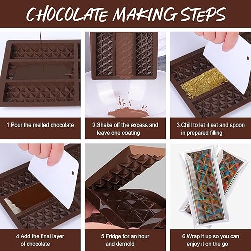 3 Pièces Moule Tablette Chocolat en Silicone,Moule Chocolat Profond Antiadhésif,Moules À Barres De Chocolat De Dubaï,pour Chocolats Maison,Pralines,Bonbons (B)