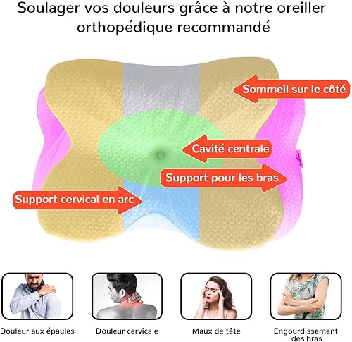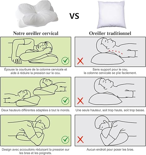 Umyth Oreiller Ergonomique Cervical à Mémoire de Forme en Bambou pour la Nuque, Oreiller en Mousse à Mémoire de Forme,Oreiller Confort pour Les Dormeurs sur Le Côté, Le Dos et Le Ventre