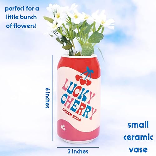 ban.do Petit Vase décoratif en céramique coloré, décoration d'étagère pour la Maison ou Le Bureau, canette de Soda d'inspiration Vintage, Soda à la crème Cerise Porte-Bonheur