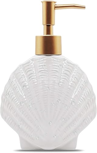 Distributeur de Savon en Forme de Coquillage en céramique Blanche avec Pompe dorée Mate pour décoration d'intérieur pour Salle de Bain Cuisine