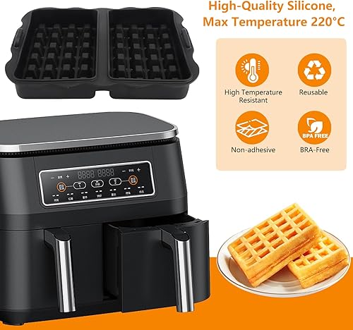 Lot de 2 moules à gaufres pour Ninja – Accessoire friteuse à air en silicone réutilisable, compatible avec Ninja AF400EU, AF451EU, SL400EU, AF500DE – Moule à gaufres pour friteuse sans huile