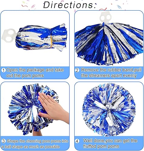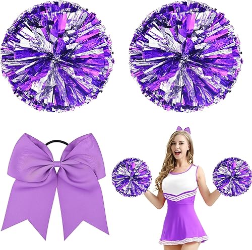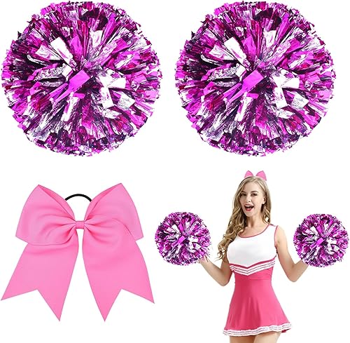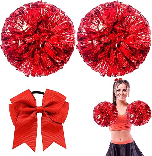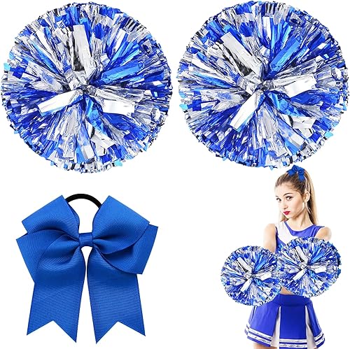 3 Pièces Cheerleading Pom Poms, Pompom, Pompons de Pom-Pom Girl, avec Bandes métalliques et Poignée pour Matchs de Sport, Performance sur Scène, Fête de Vacances