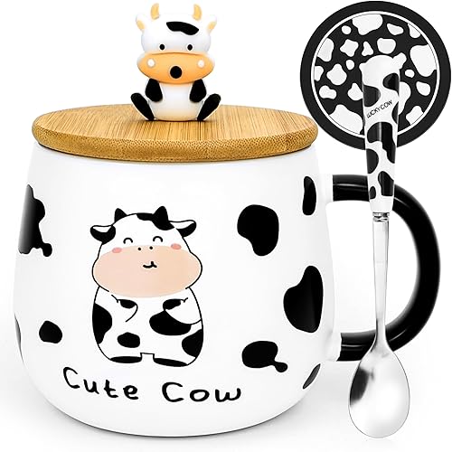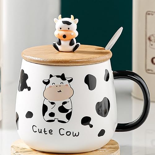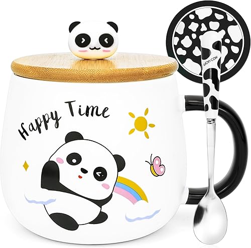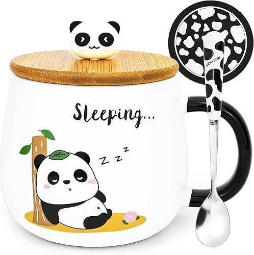Arawat Panda Tazza Con Coperchio Panda Regalo Tazza Divertente Tazza Da Caffè In Ceramica 400 Ml Tazza Da Tè Con Cucchiaio e Sottobicchiere, Dolce Regalo Di Compleanno Per Donne Uomini Amici Ragazzi