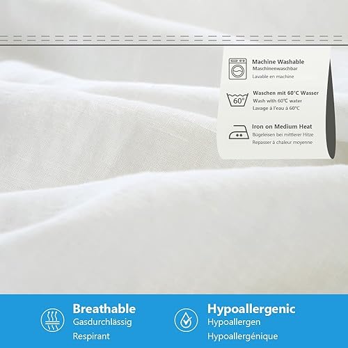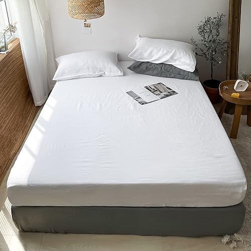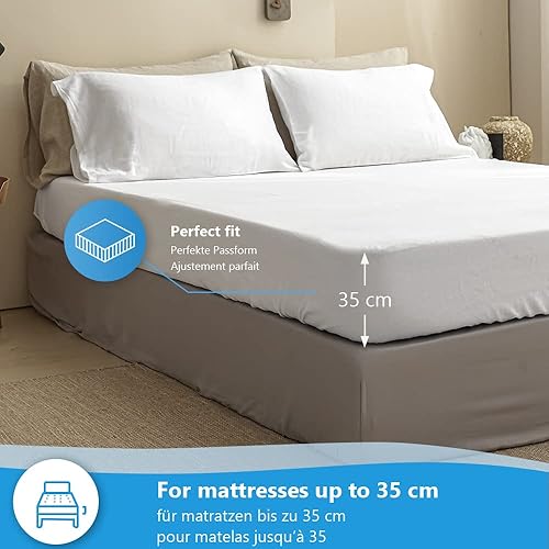 Simple&Opulence Drap Housse 100% Lin 2 Personnes - 182 × 200 cm, Le Lin - Bonnets pour 35 cm