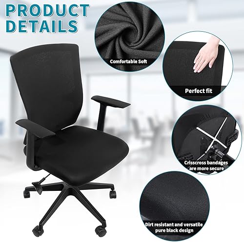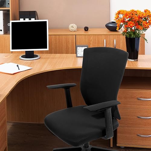 Tatuo Housse de Chaise de Bureau avec Housse d'Accoudoir et Dossier, Couverture de Siège Extensible Universelle Protecteur de Chaise d'Ordinateur Rotatif Élastique (Noir, 1 Set)